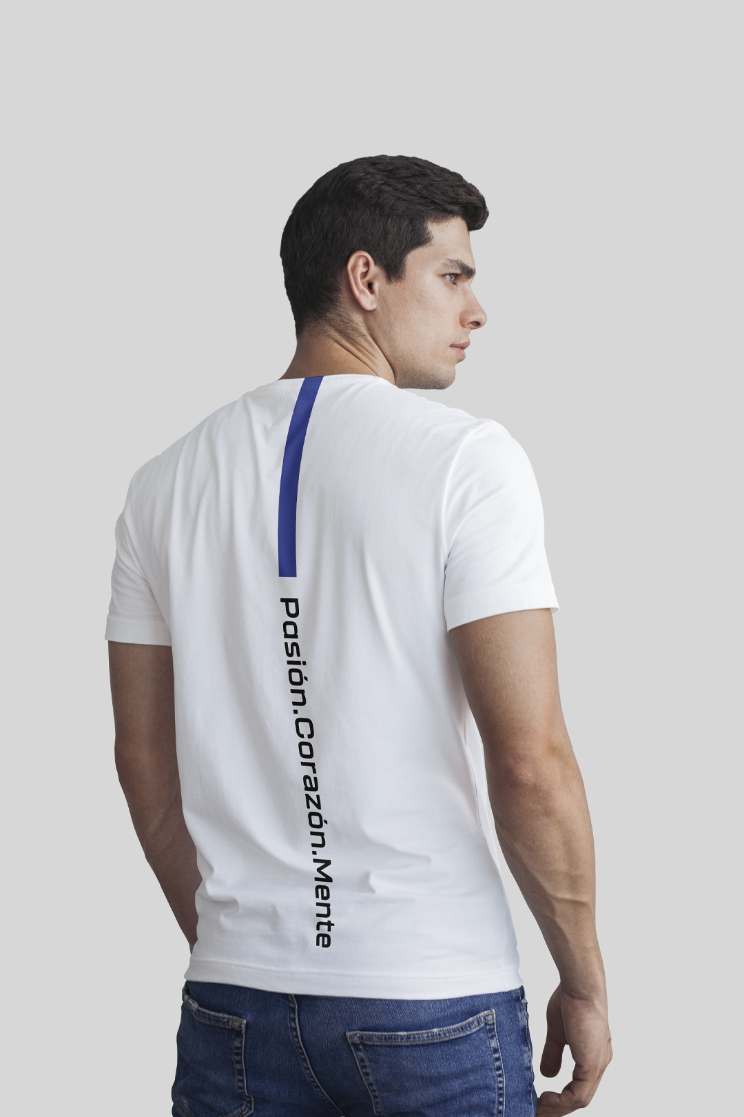 POLERA M/C BLANCO/AZUL PCM LINEA TRASERA HOMBRE TALLA L