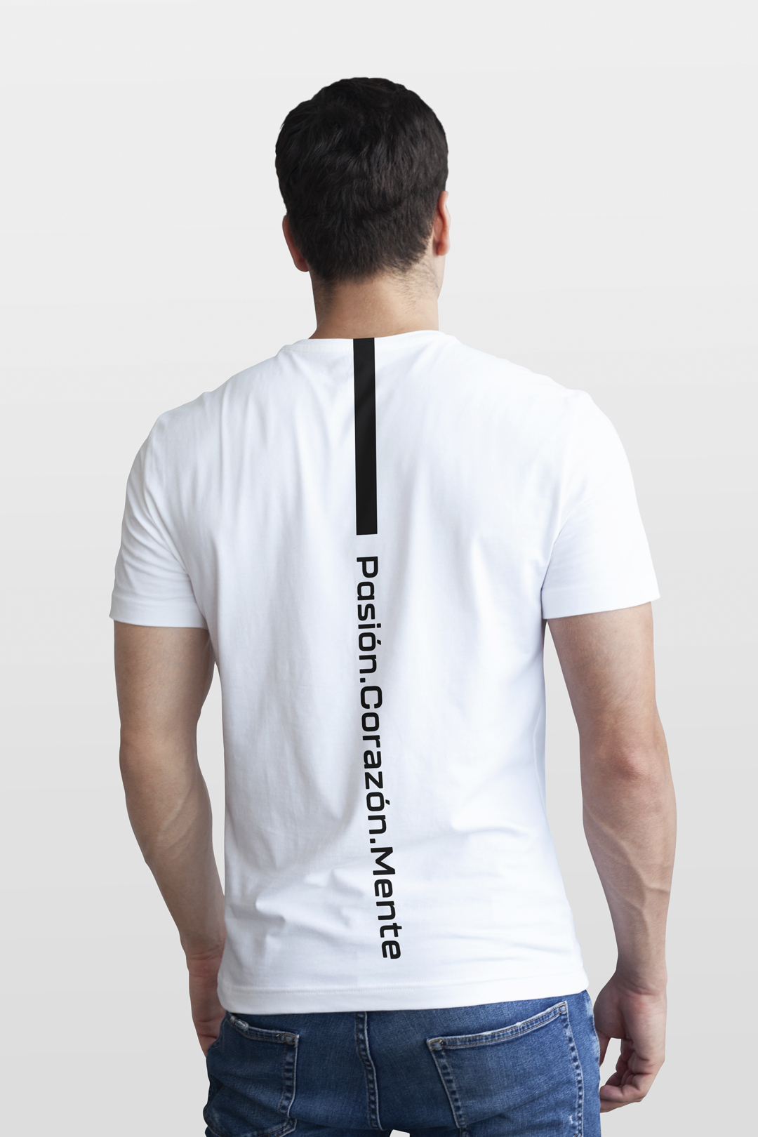 POLERA M/C BLANCO/NEGRO PCM LINEA TRASERA HOMBRE TALLA M