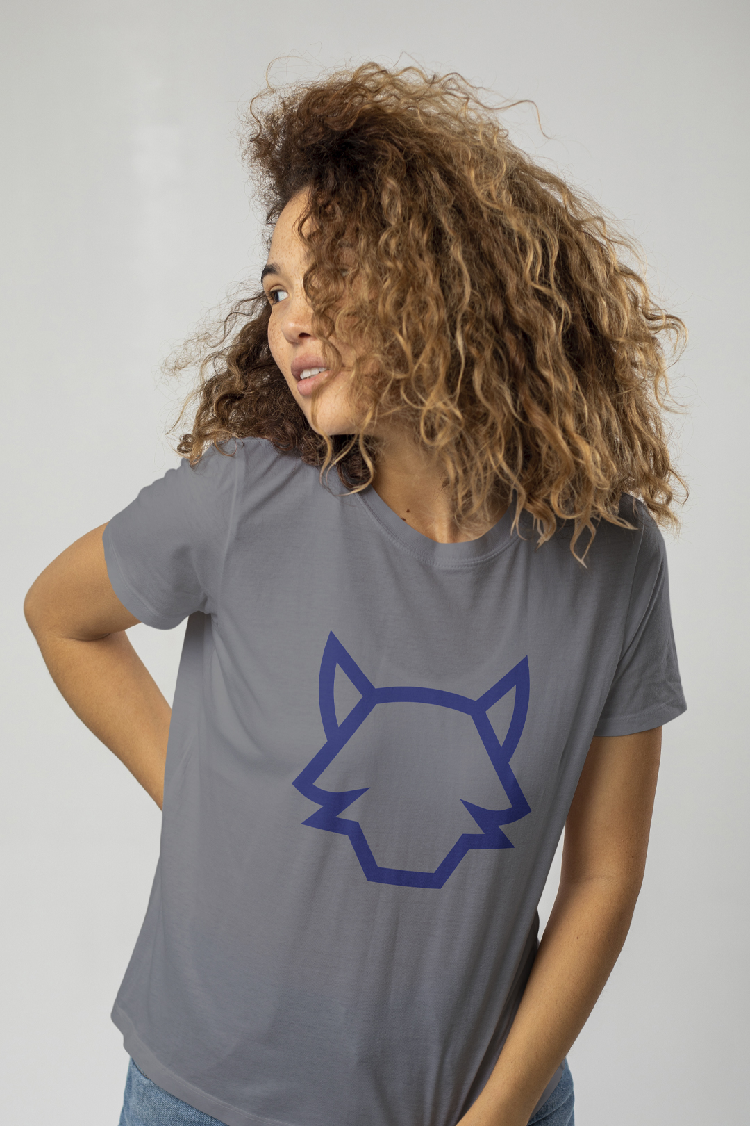 POLERA M/C GRIS/AZUL LOBO DELANTERO MUJER TALLA S