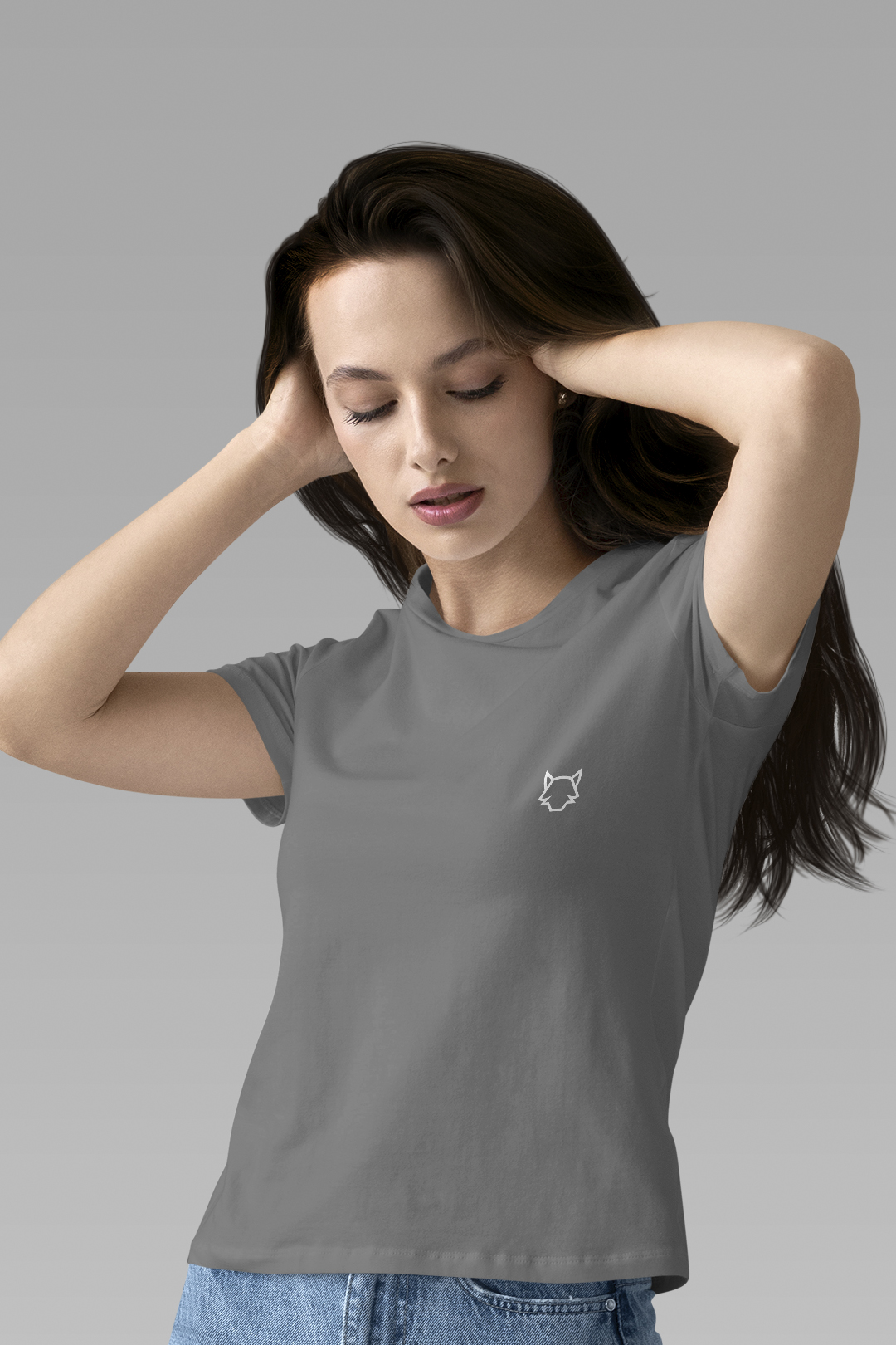 POLERA M/C GRIS/BLANCO PCM LINEA TRASERA MUJER TALLA M
