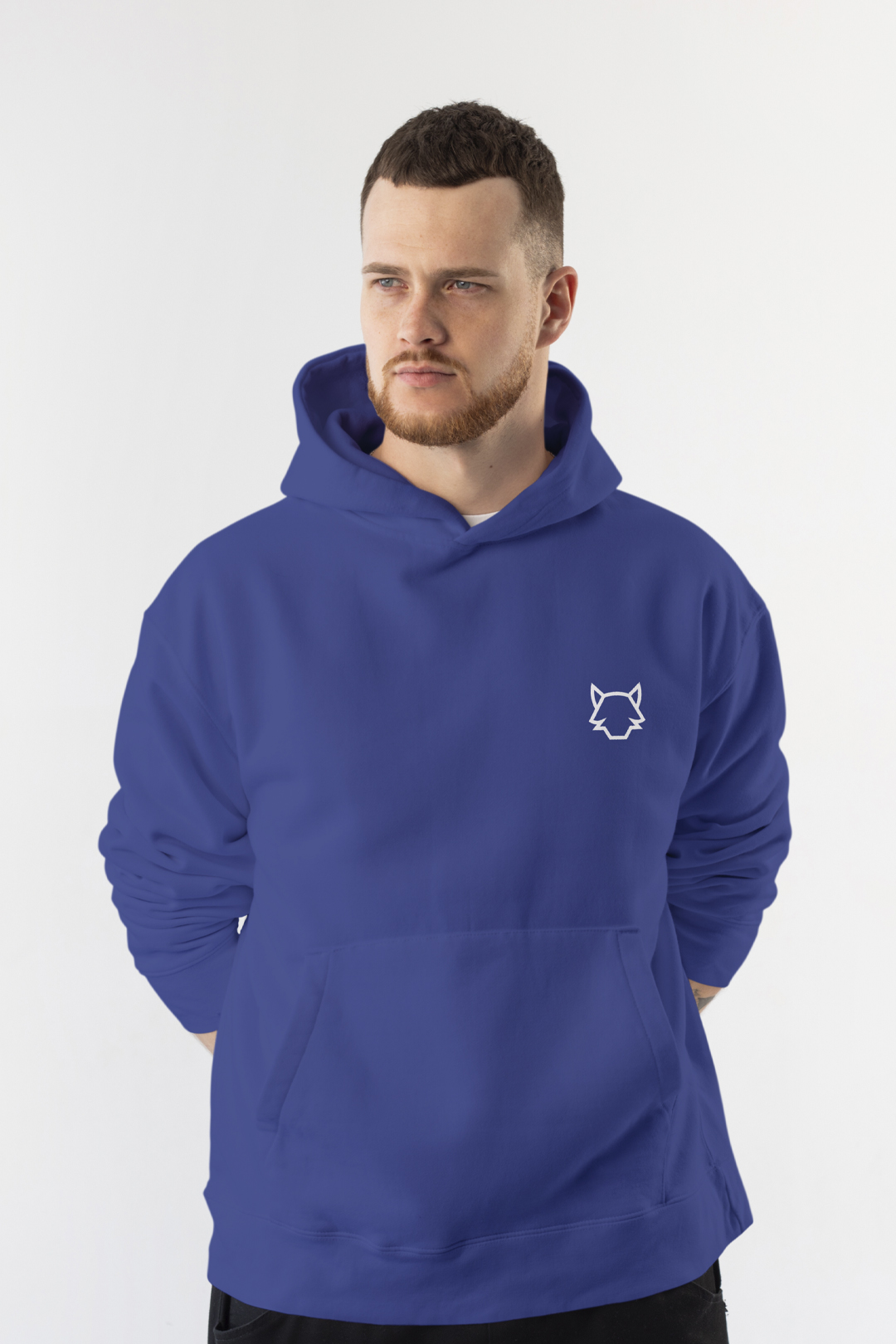 Características: Polerón azul con capucha y bolsillo frontal tipo canguro. Emblema del lobo en el pecho y en la espalda a gran tamaño. Estilo urbano con carácter y fuerza visual.