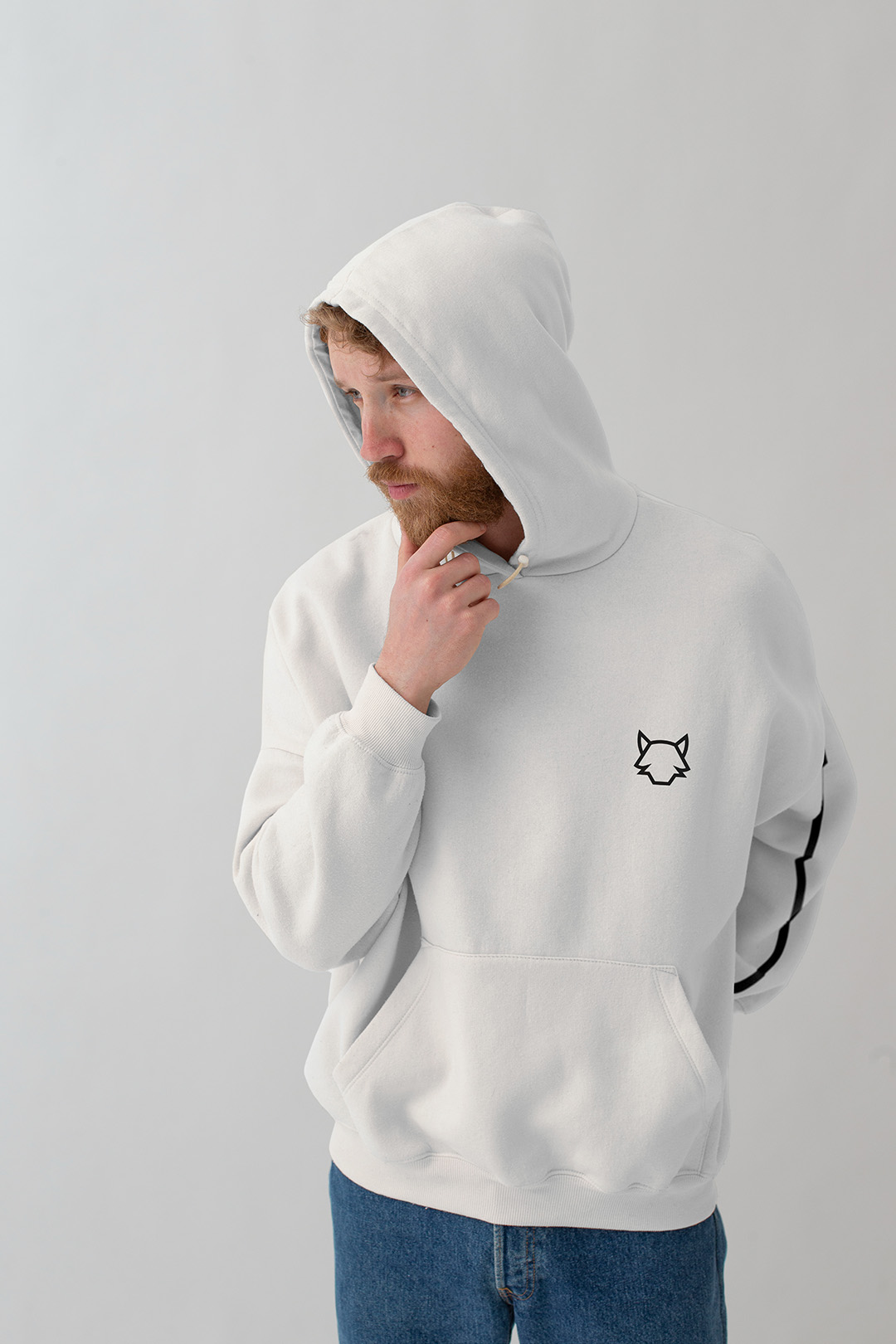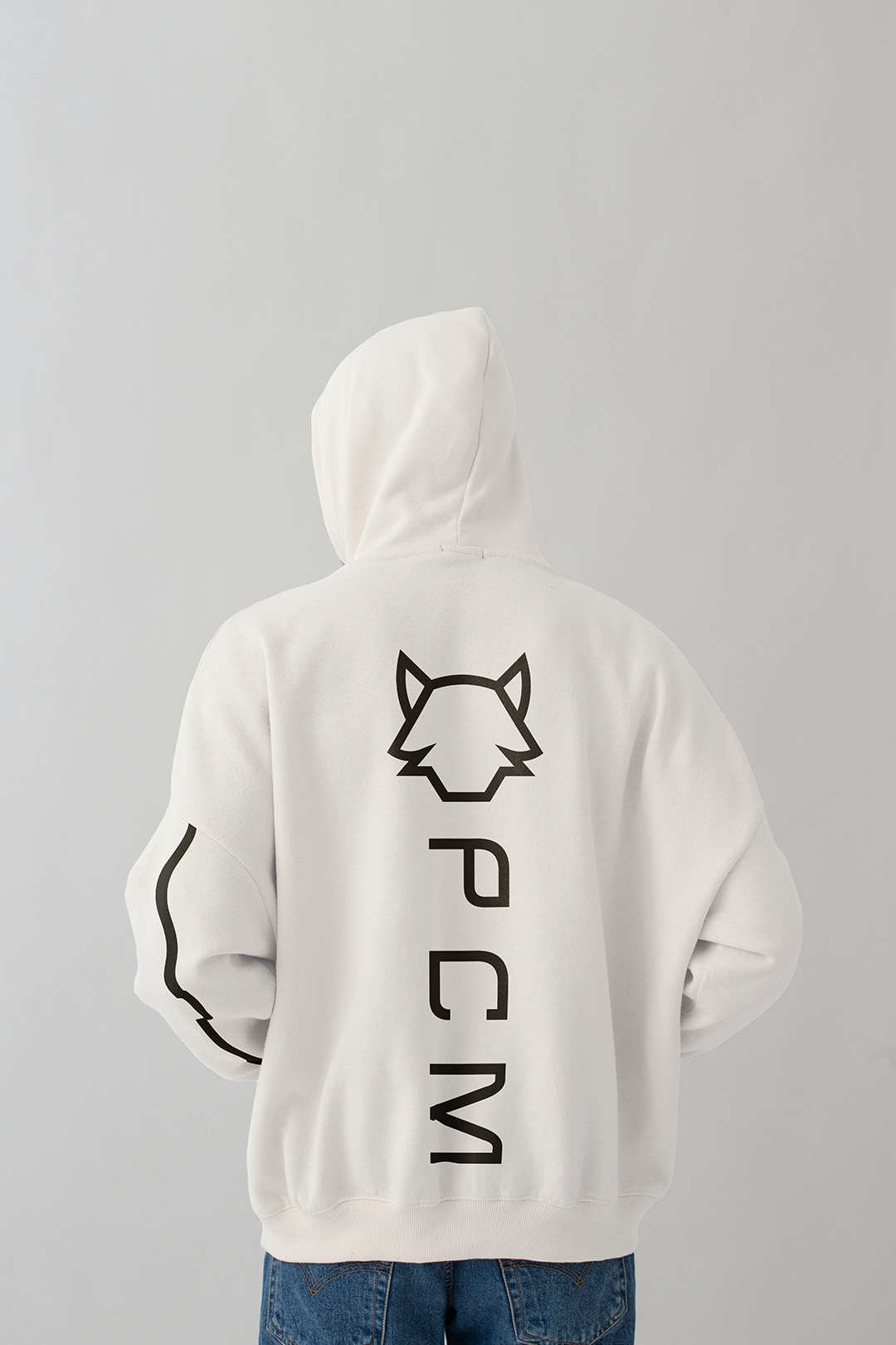 Características: Polerón blanco con logo del lobo en el pecho y estampado vertical en la espalda que combina la marca PCM con el emblema del lobo. Detalle de línea azul en manga izquierda. Diseño que fusiona fuerza y elegancia, ideal para quienes buscan destacar con un estilo auténtico y decidido.