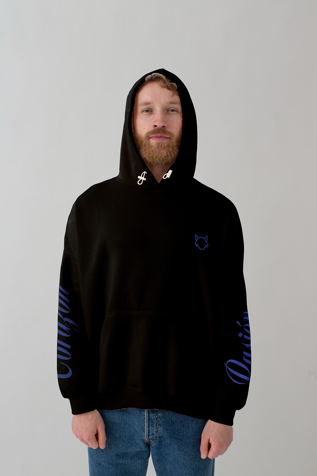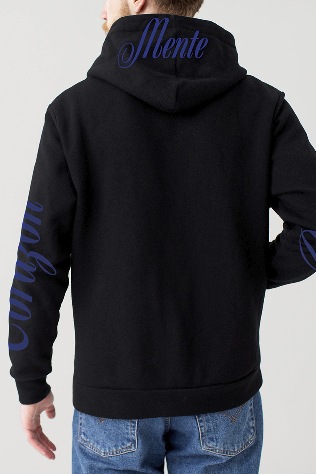 Características: Polerón negra con capucha y bolsillo frontal tipo canguro. Emblema del lobo en el pecho y mensaje caligráfico estampado en ambas mangas y capucha de Pasión, Corazón y Mente. Estilo urbano con carácter y fuerza visual.