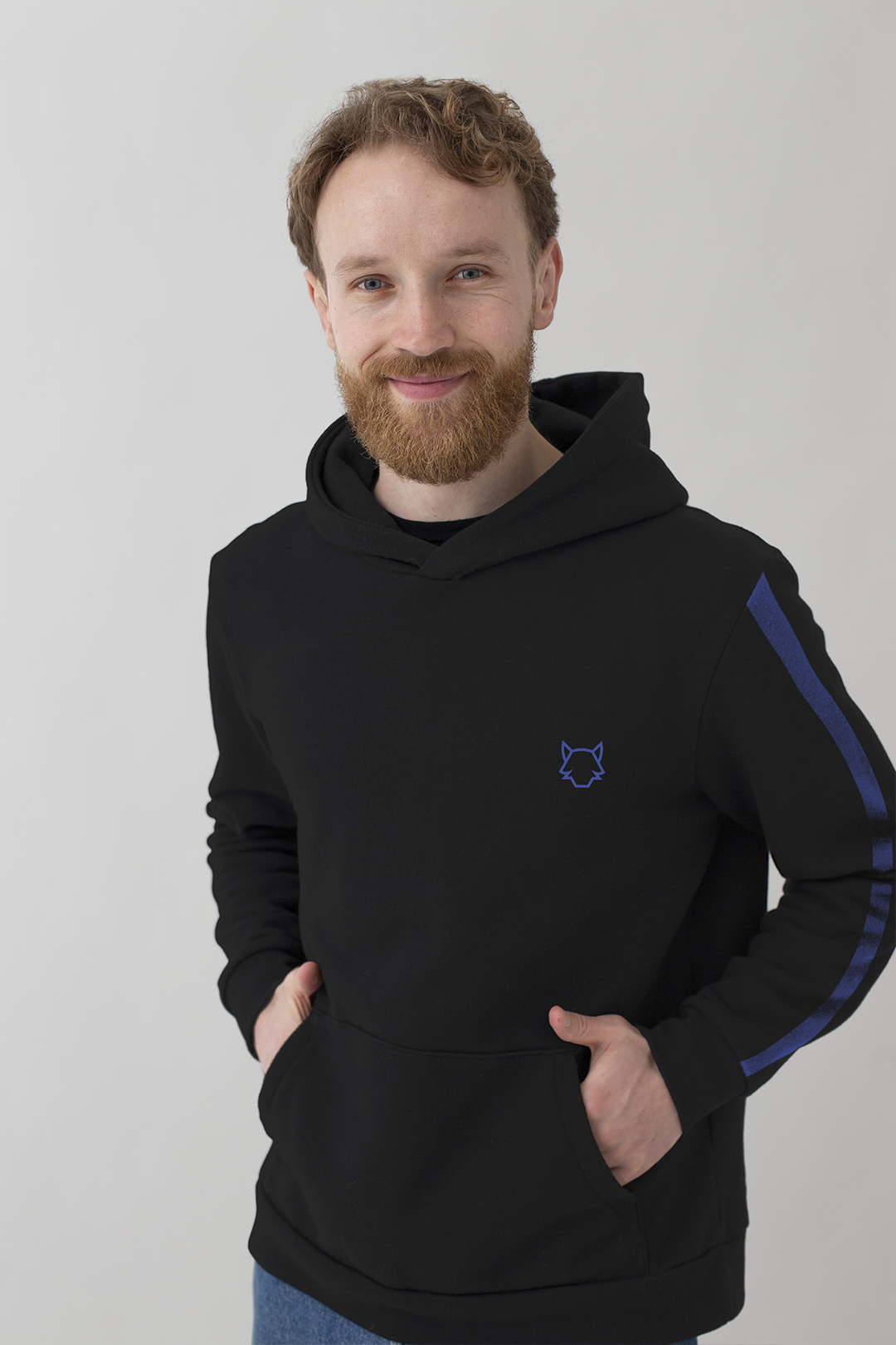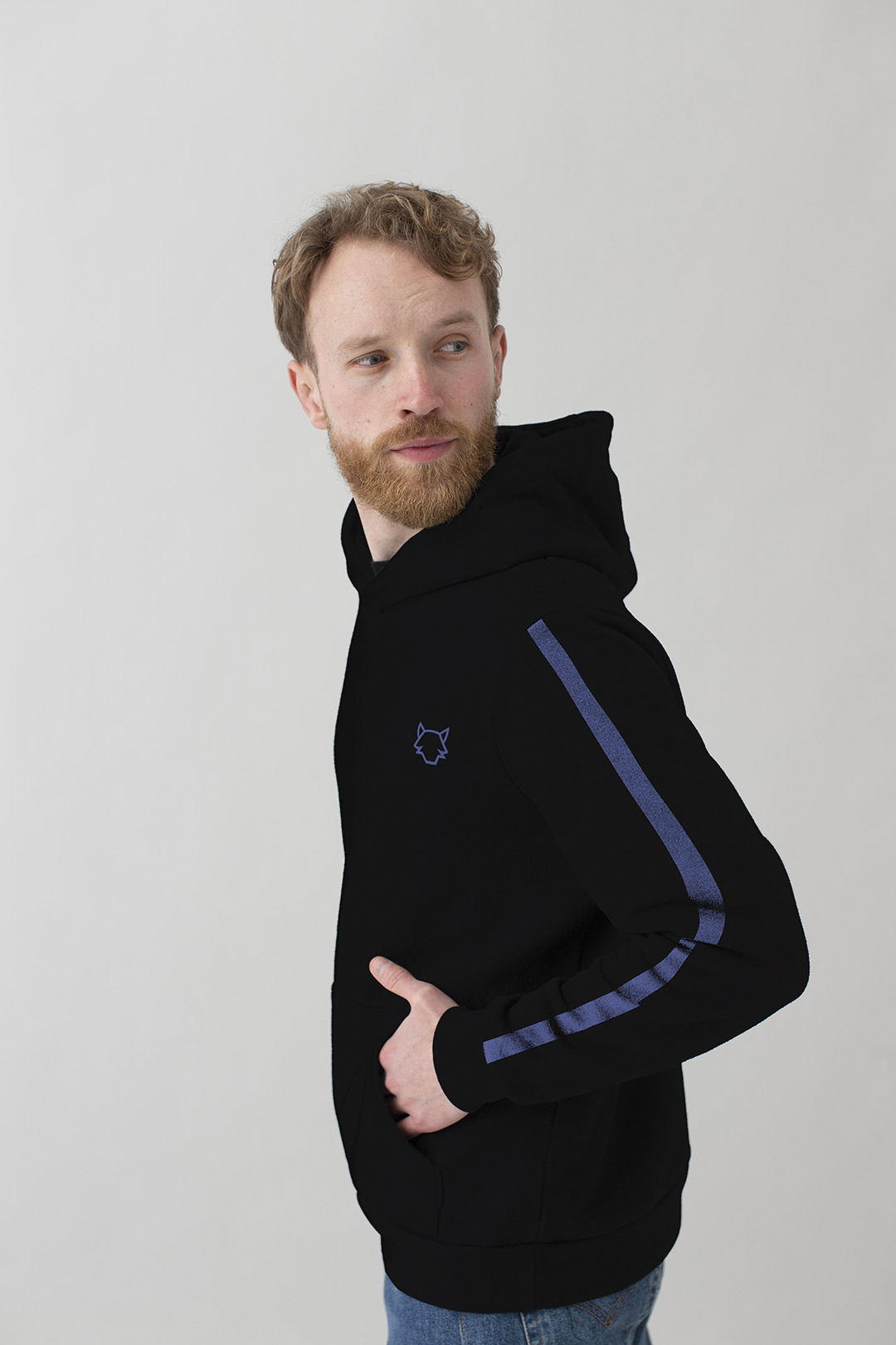 Características: Polerón negra con logo del lobo en el pecho y estampado vertical en la espalda que combina la marca PCM con el emblema del lobo. Detalle de línea azul en manga izquierda. Diseño que fusiona fuerza y elegancia, ideal para quienes buscan destacar con un estilo auténtico y decidido.